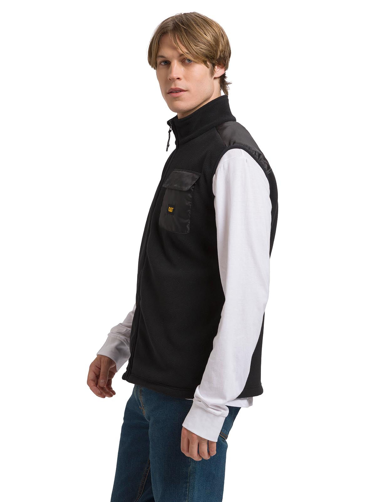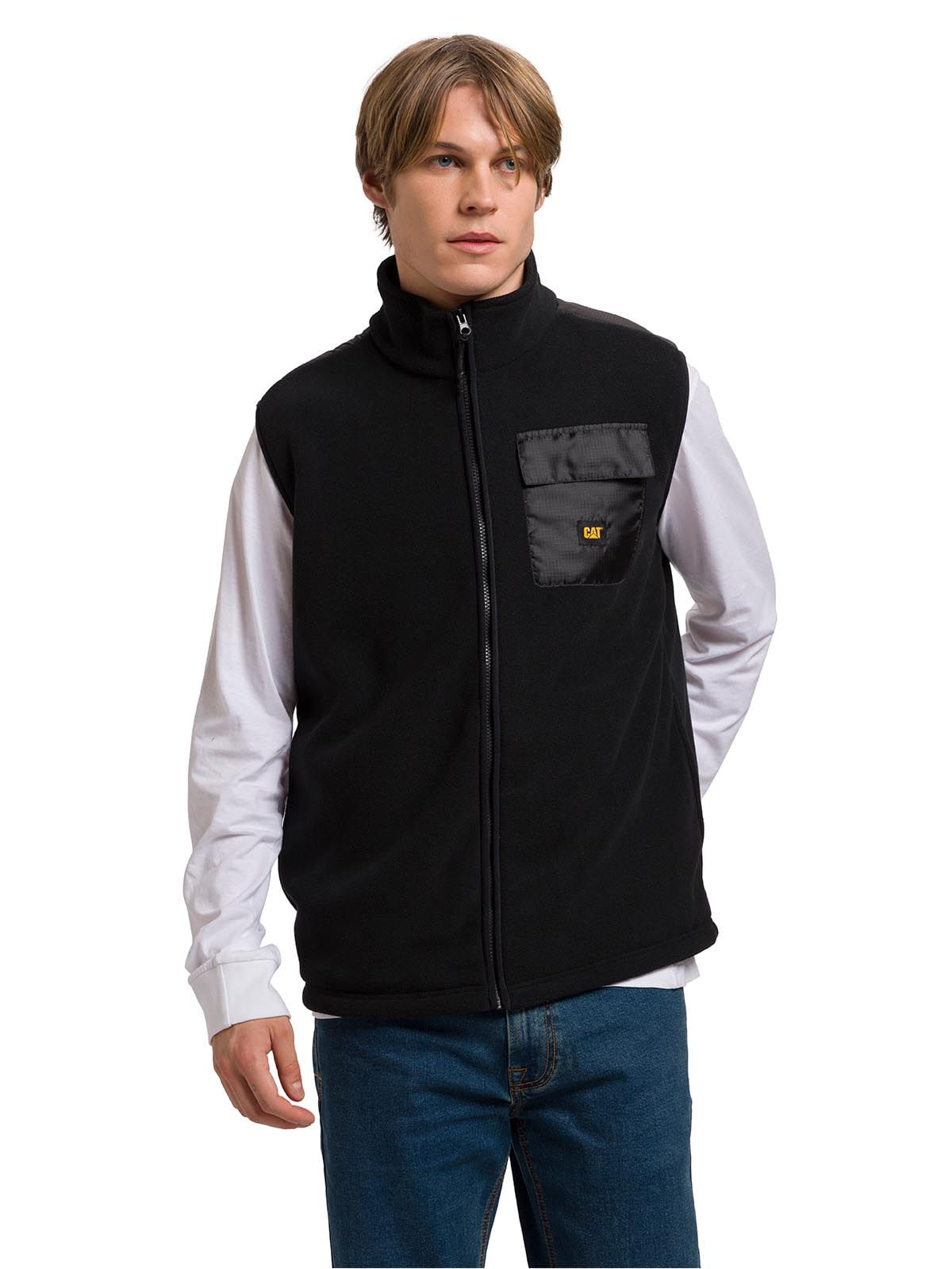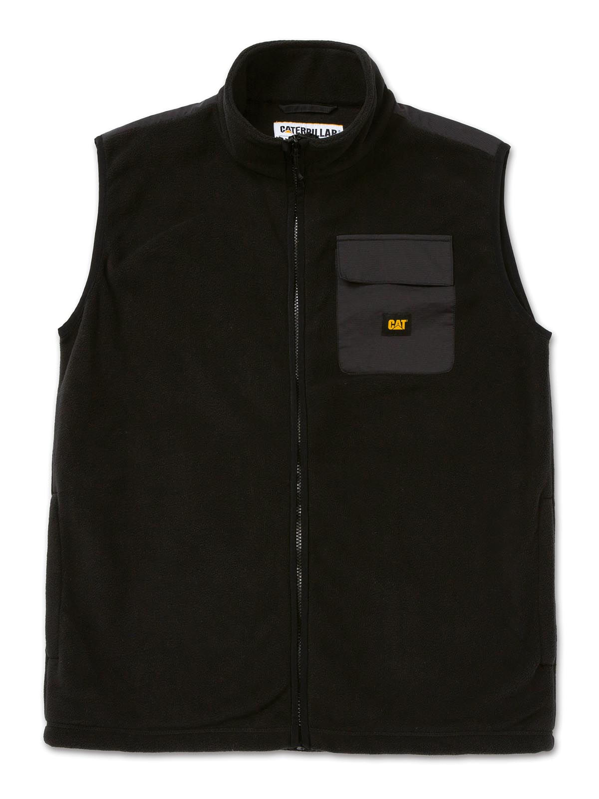 Men's Sleeveless Polar Fleece Utility Full Zip Vest Black Cat