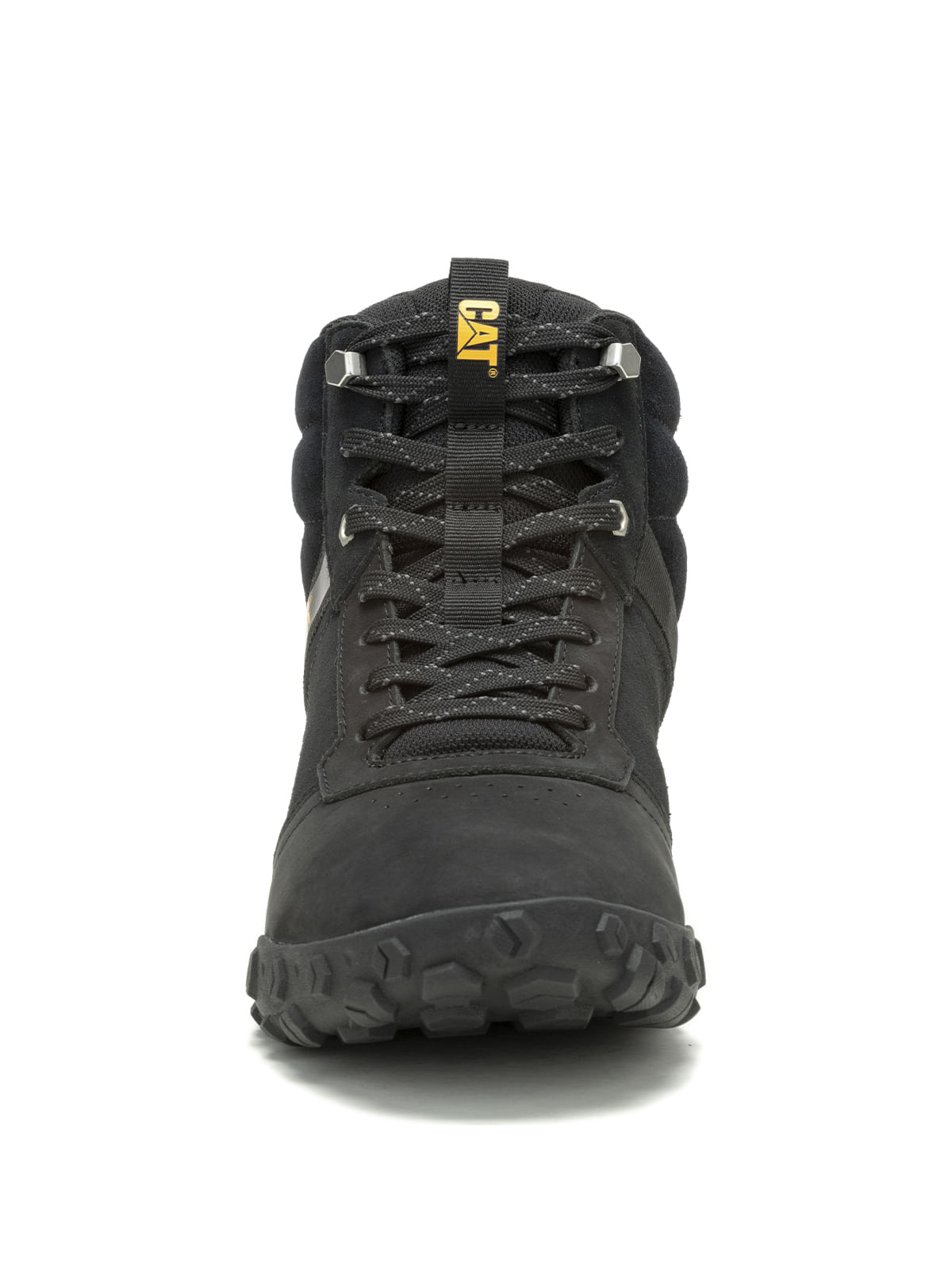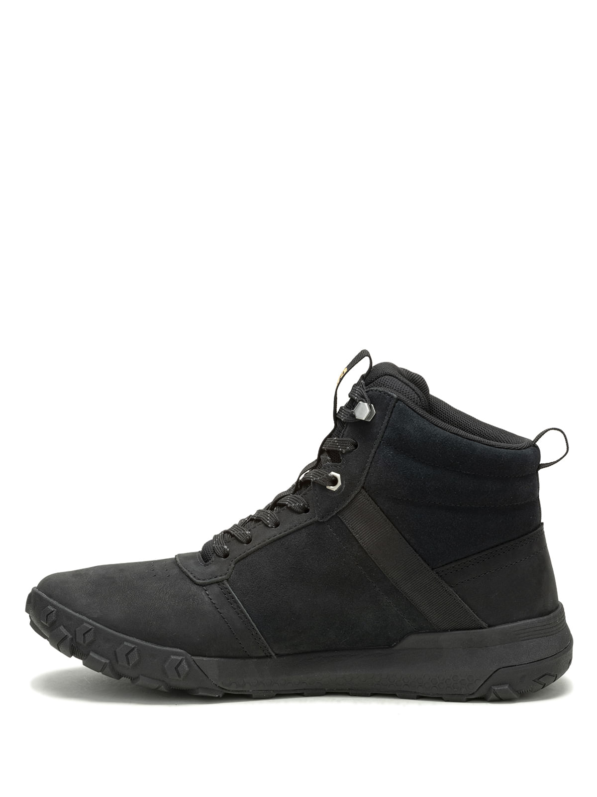 - Hex Ready Mid Black Cat Leather High Top Sneakers for Men
