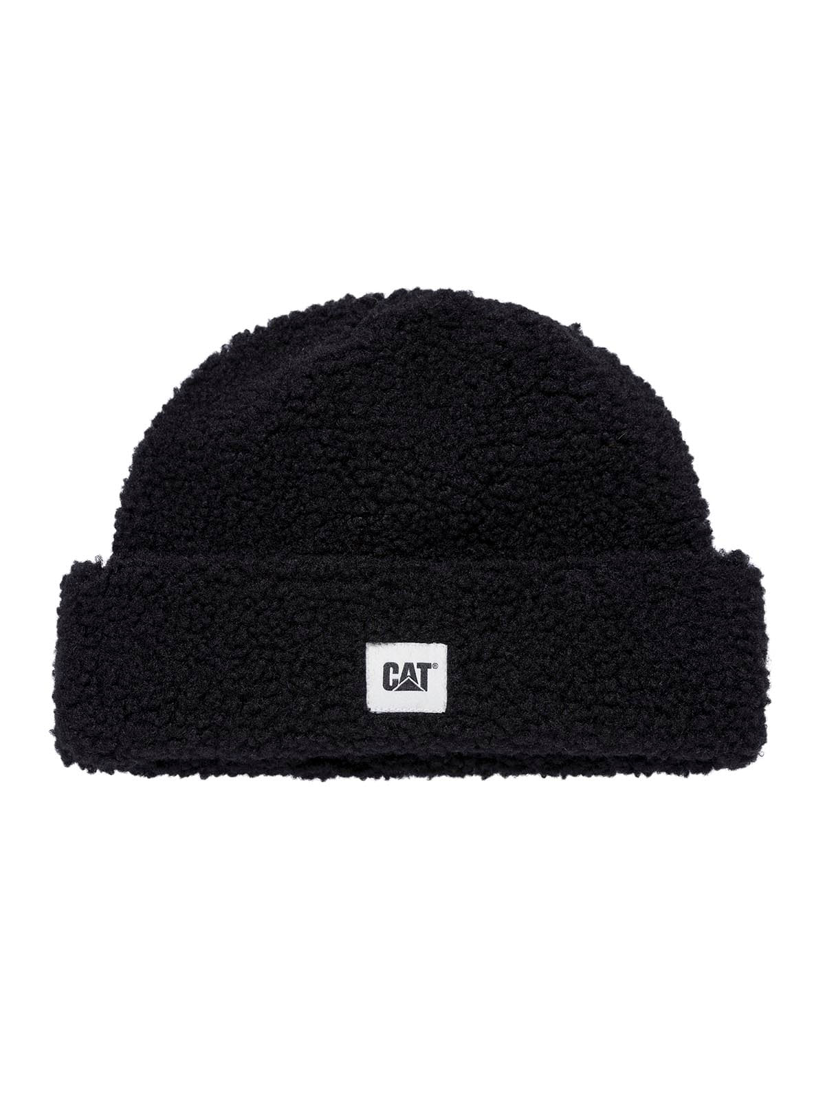 Unisex Cuffed Sherpa Knit Hat Black Cat