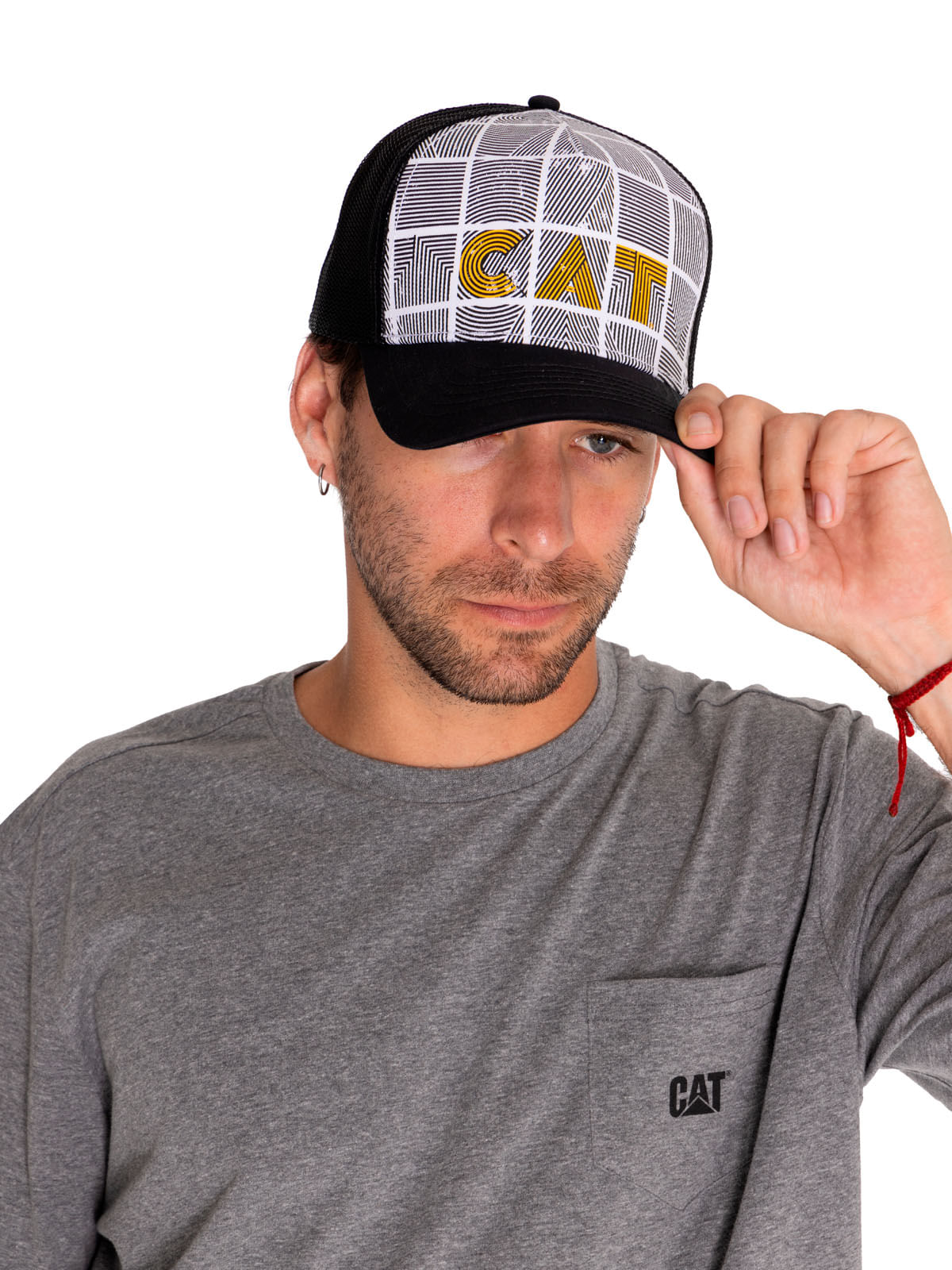 Men's Casual Jockey 6 PANEL MESH TRUCKER Black CAT