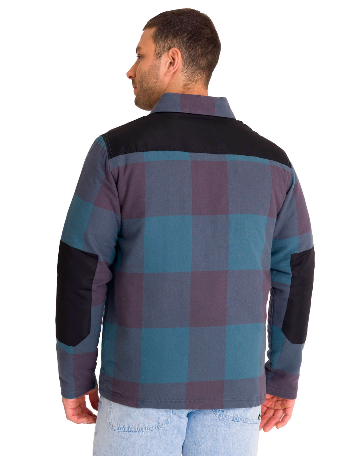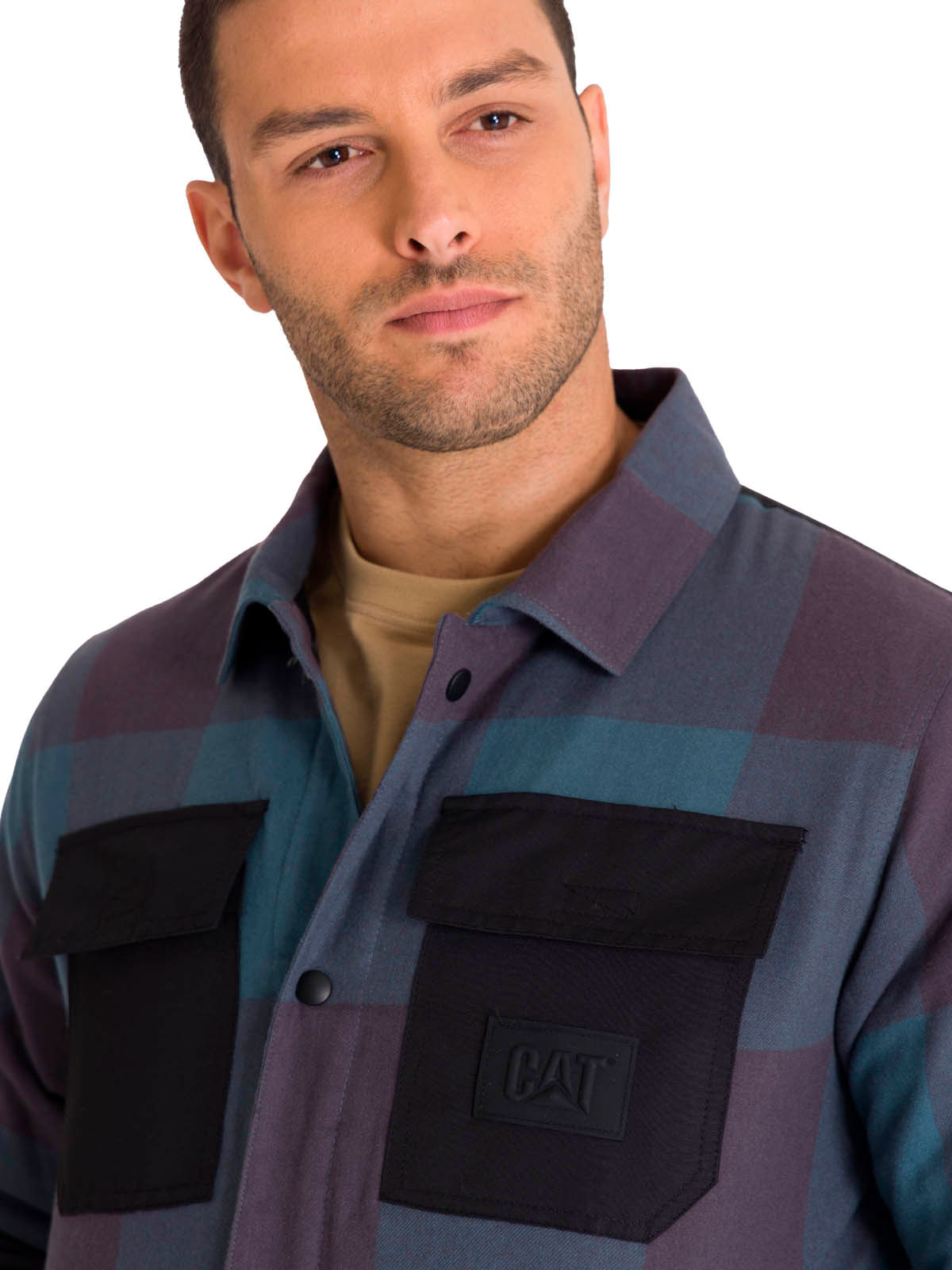 Men's Long Sleeve Flannel Snap Front Lightweight Insulated Petroleum Cat Jacket