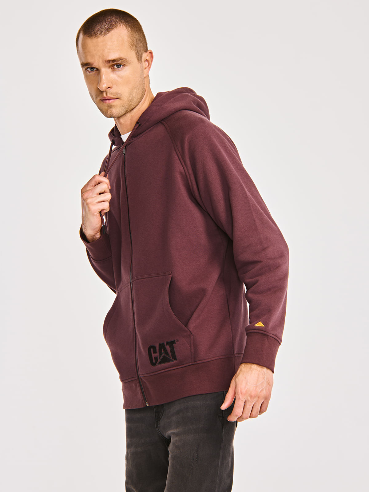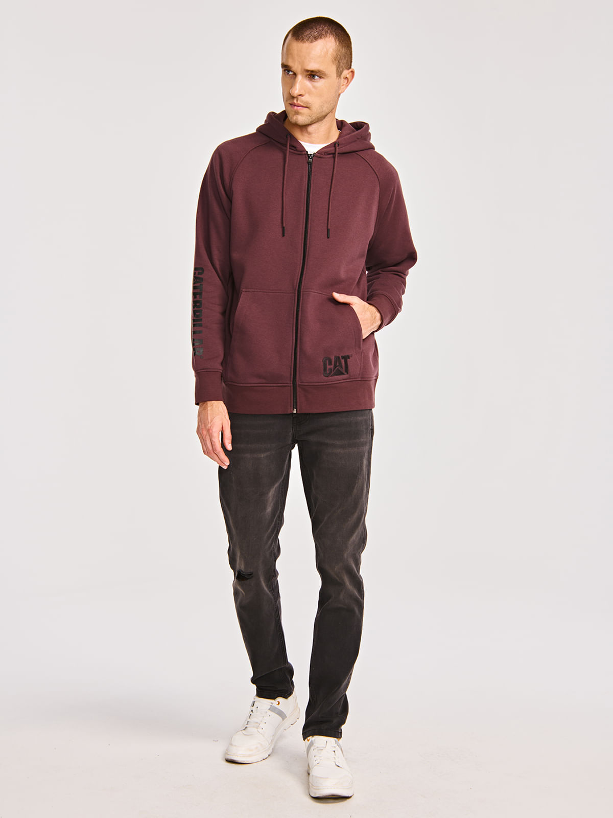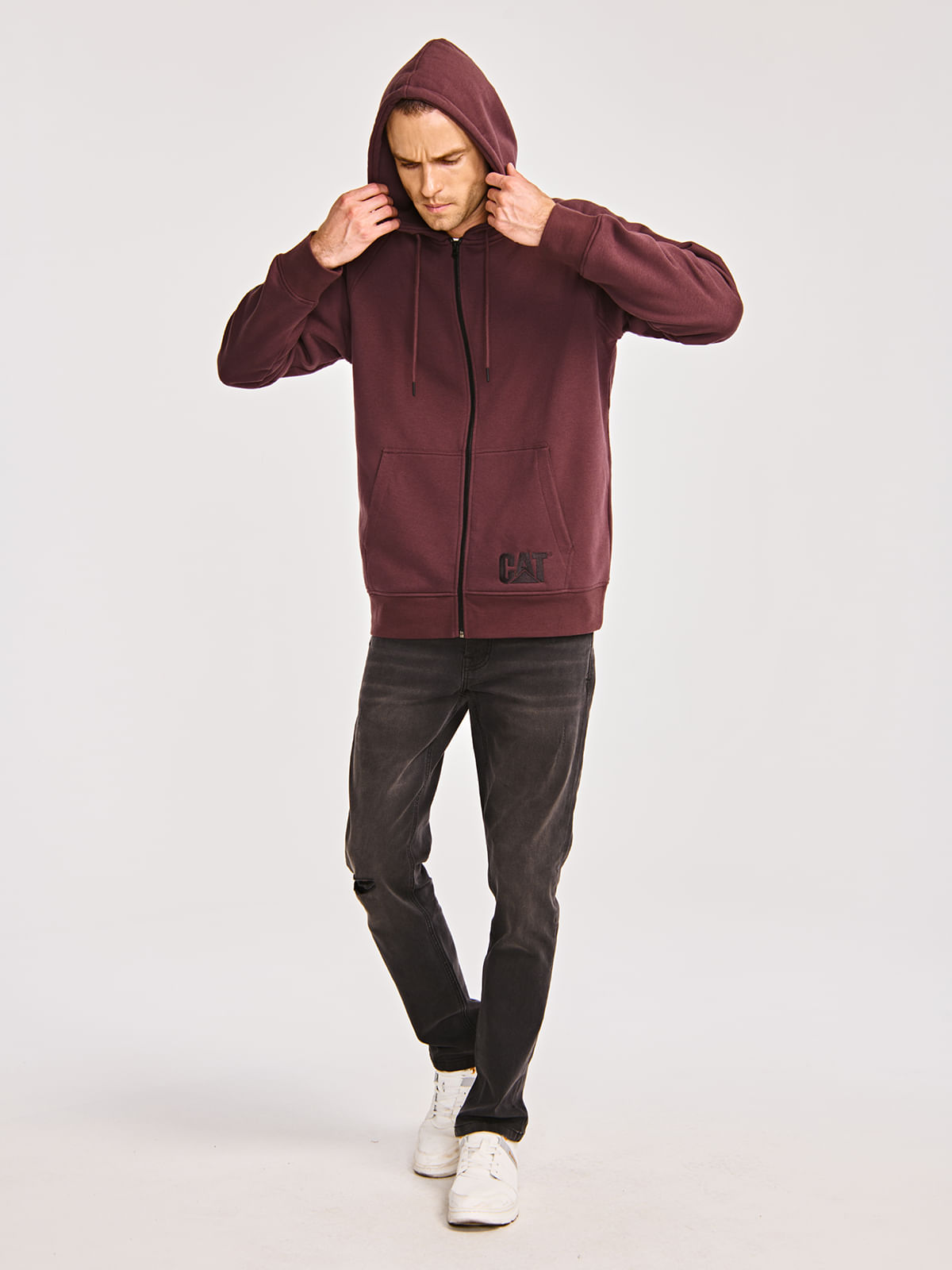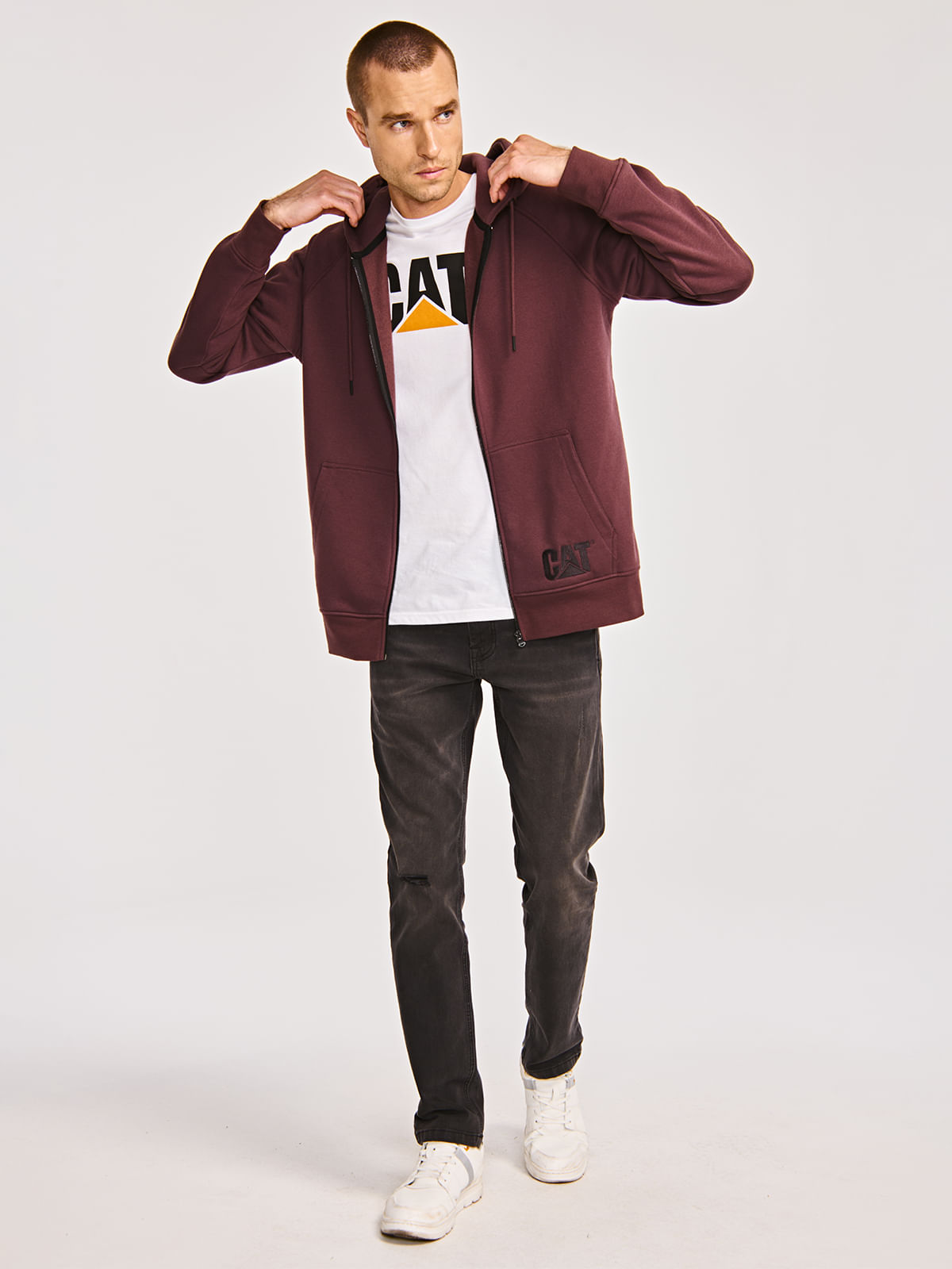 Casual Hoodie for Men FLEECE CAT LOGO FULL ZIP HOODIE Burgundy CAT