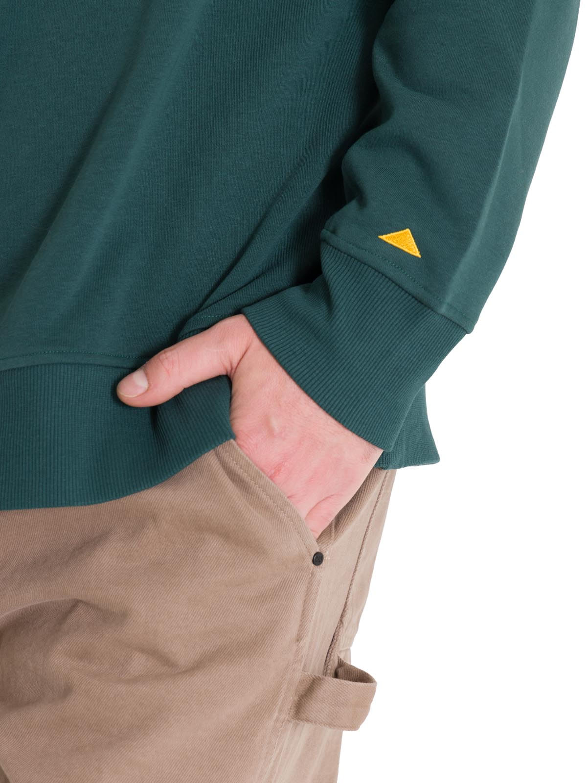 • Yellow triangle embroidery on the left sleeve