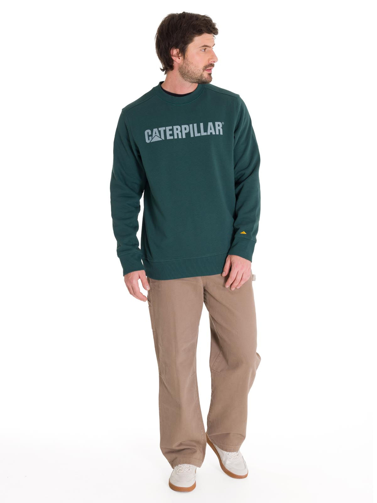 Crewneck Sweatshirt Men's Caterpillar Logo Green Cat