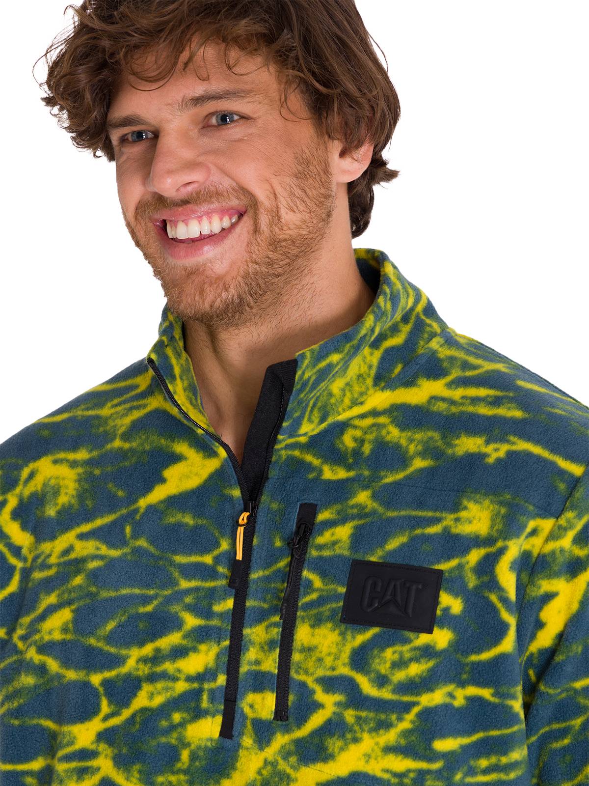 - Quarter length front zipper with zipper pull featuring the Caterpillar logo