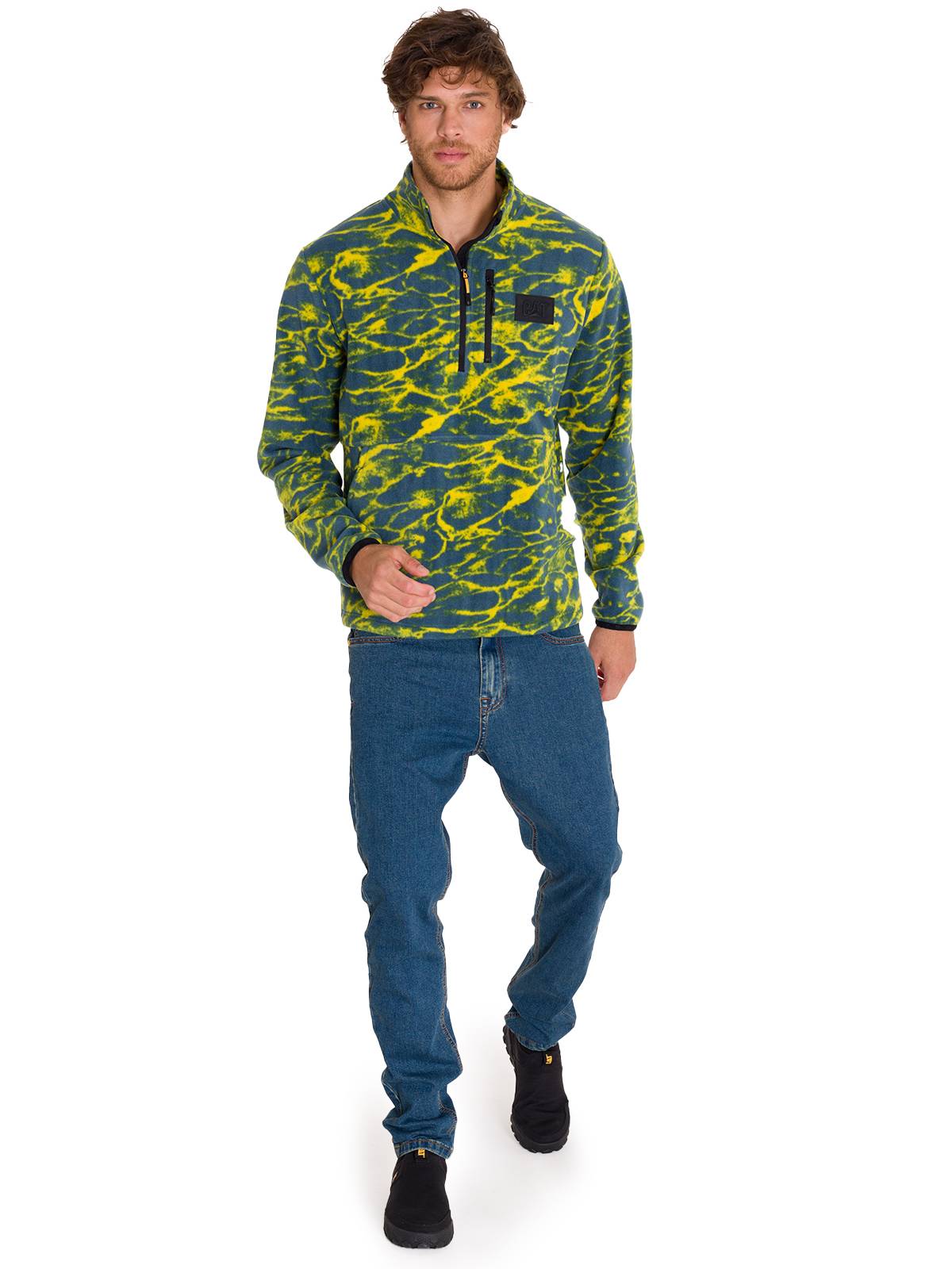 Men's Long Sleeve Polar Microfleece Quarter Zip Pullover Blue Cat