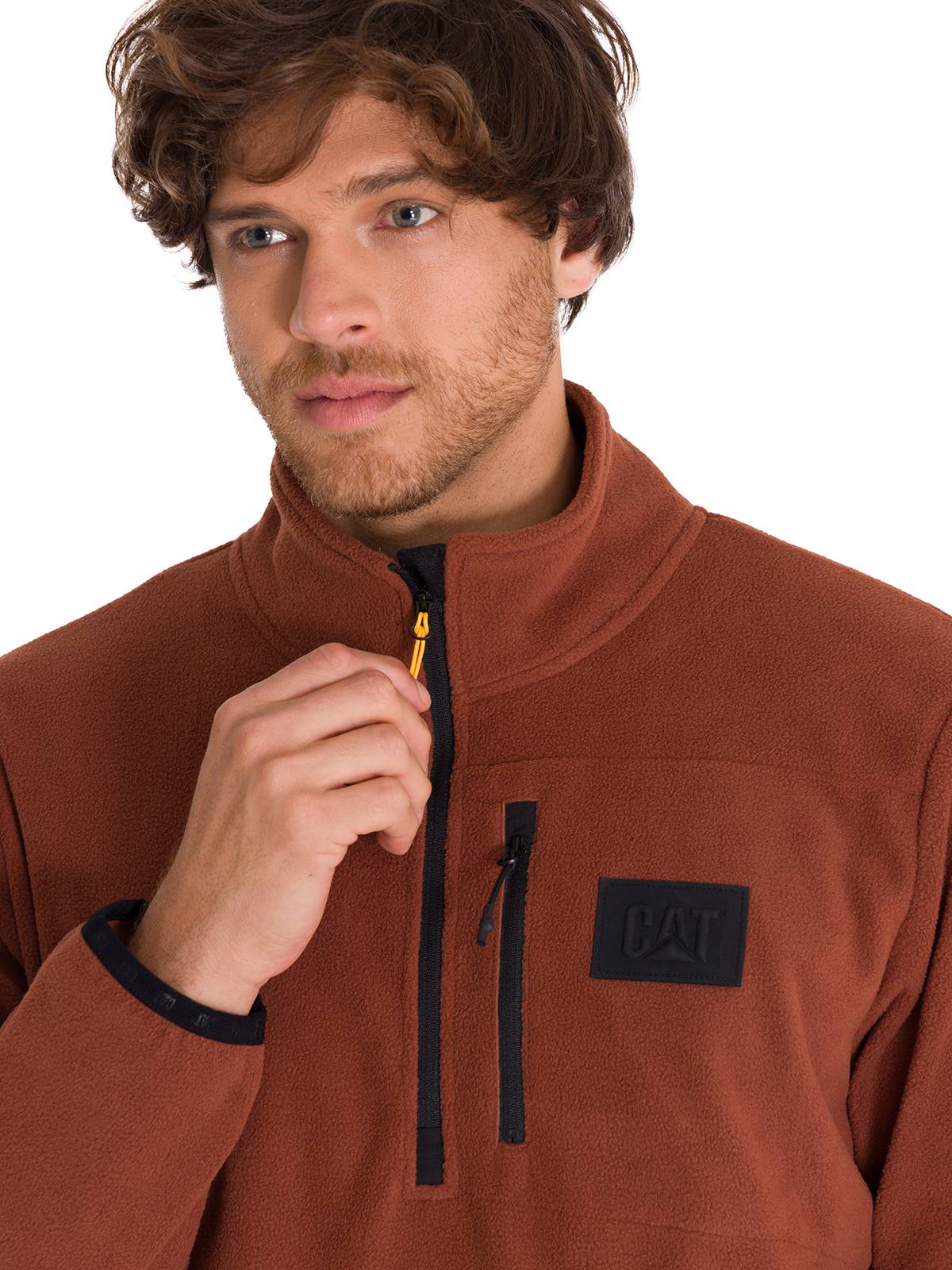Men's Long Sleeve Polar Microfleece Quarter Zip Pullover Terracotta Cat