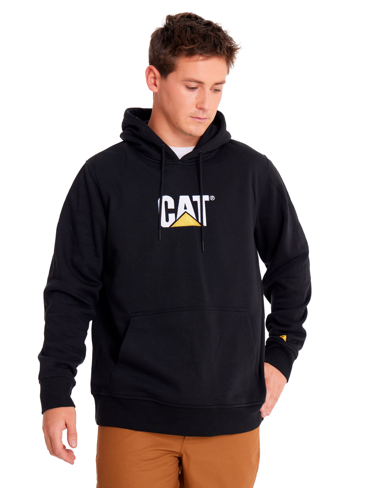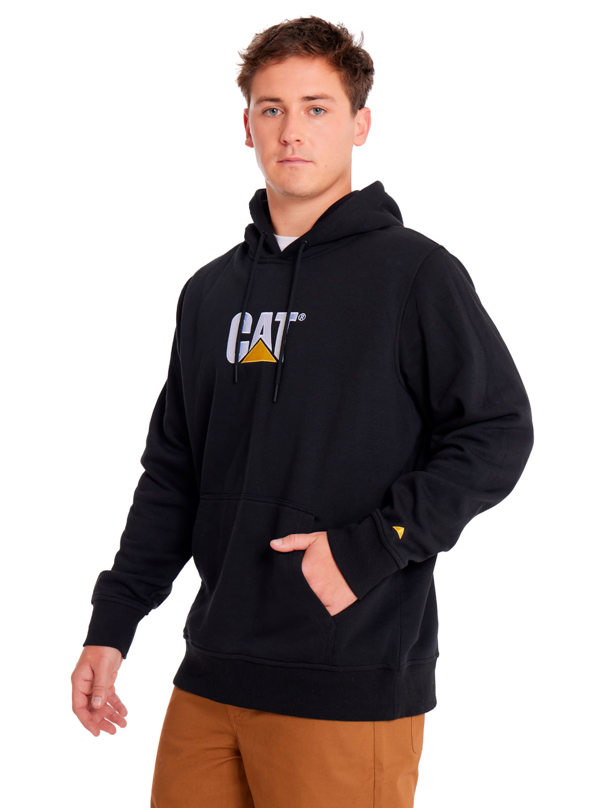 Unisex Casual FLEECE CAT LOGO PULLOVER HOODIE Black CAT