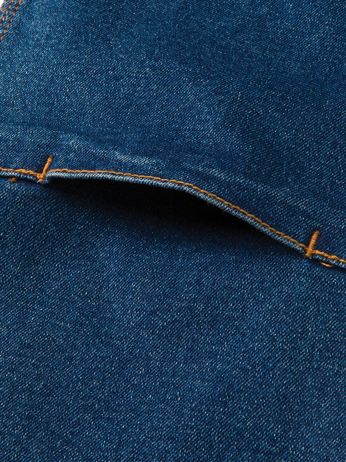 - Denim, 65% Cotton, 33% Polyester, 2% Spandex