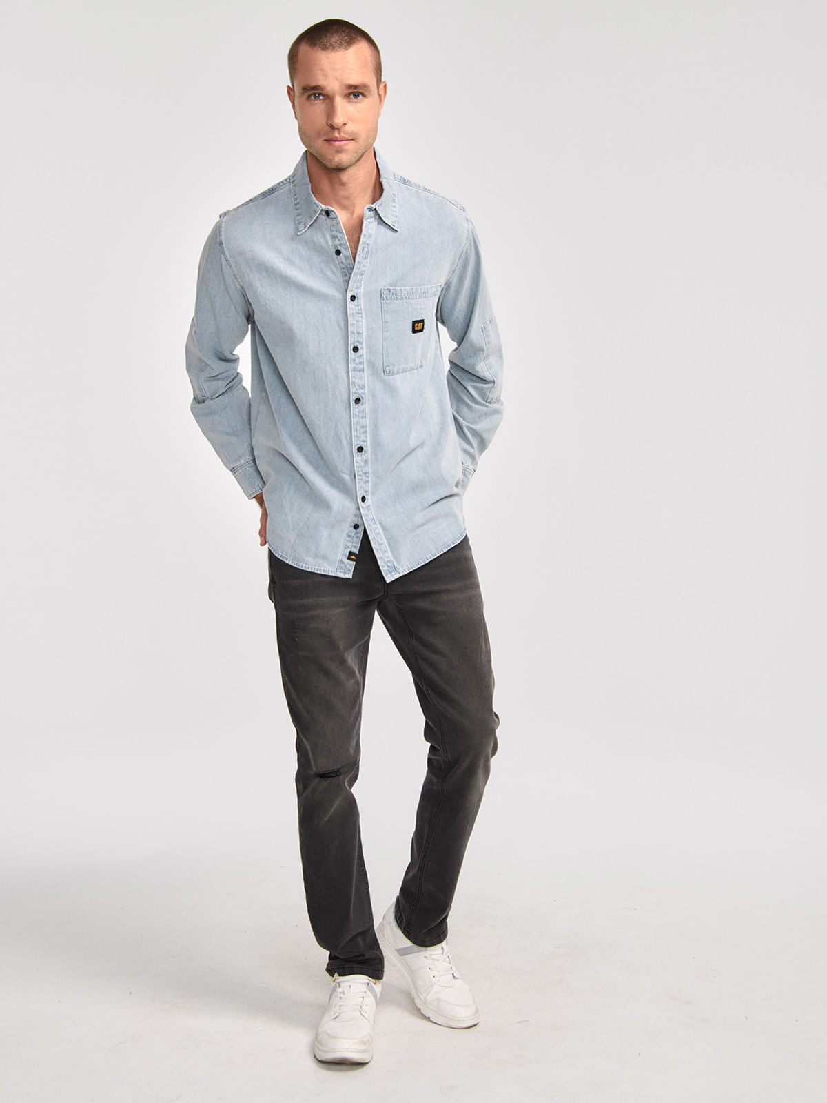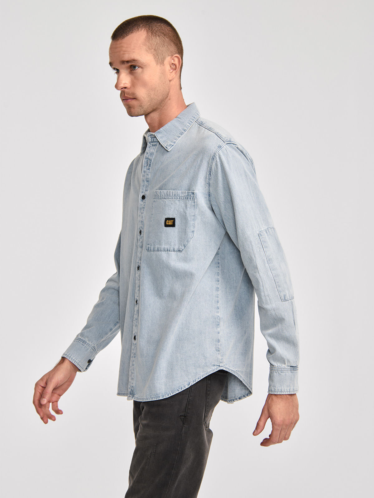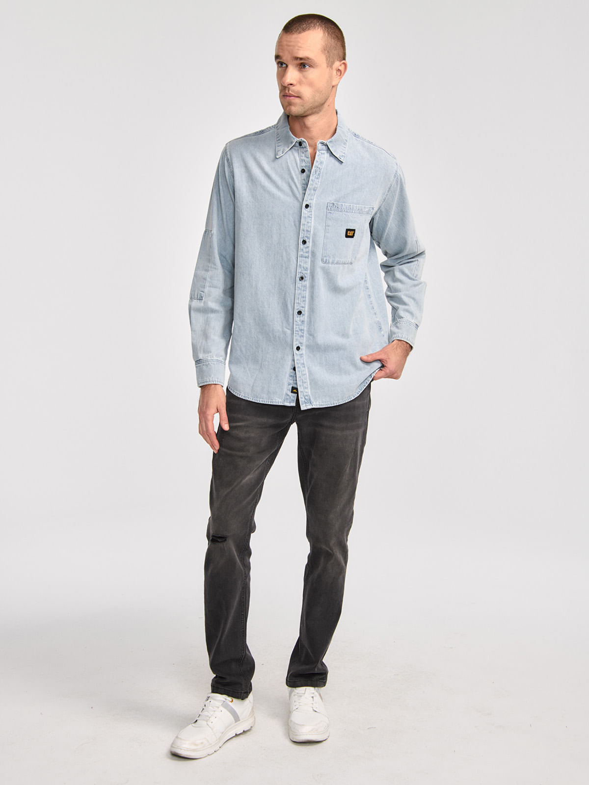Casual Long Sleeve Shirt for Men DENIM L/S SHIRT Light Blue CAT
