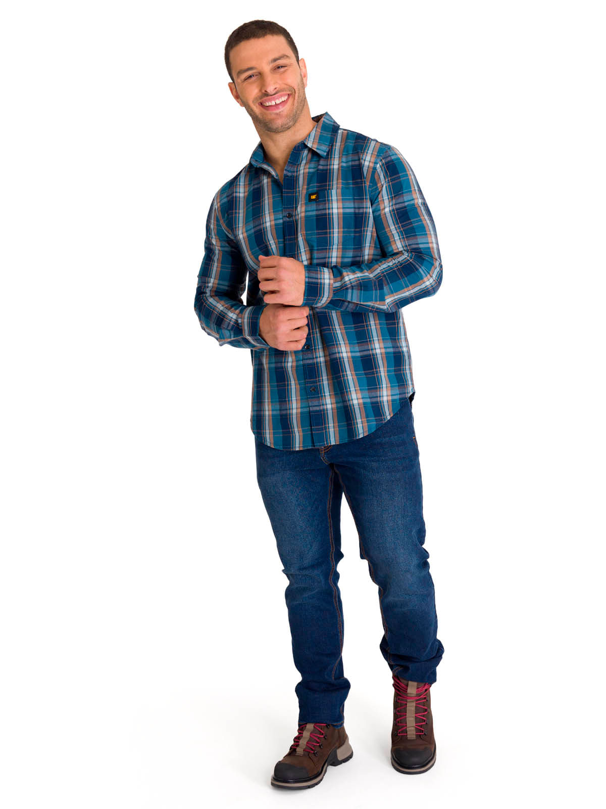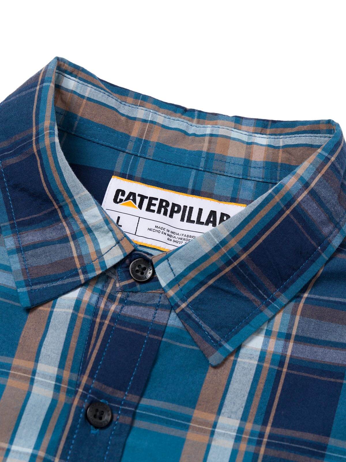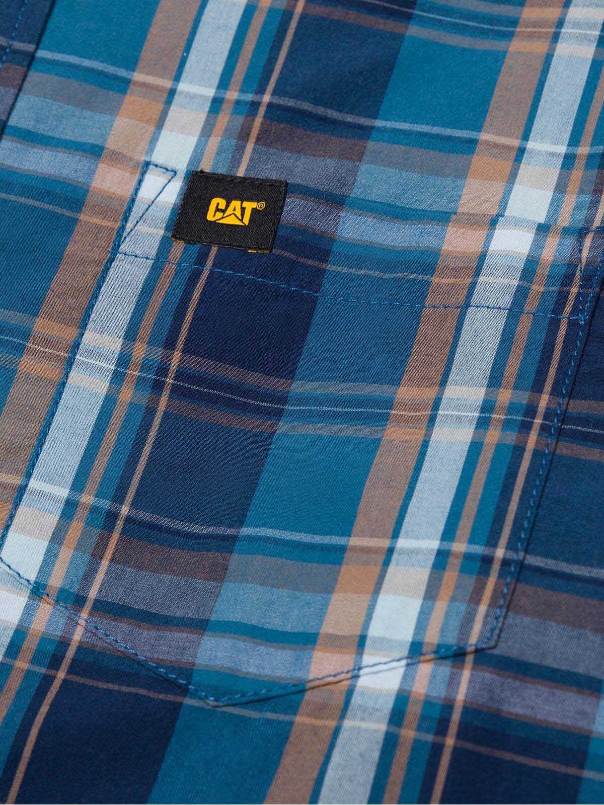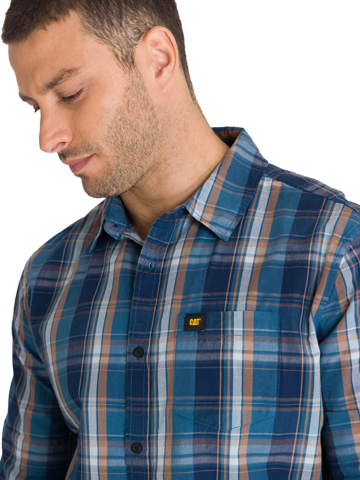 Long Sleeve Casual Men's Plaid Poplin Red Blue CAT Shirt
