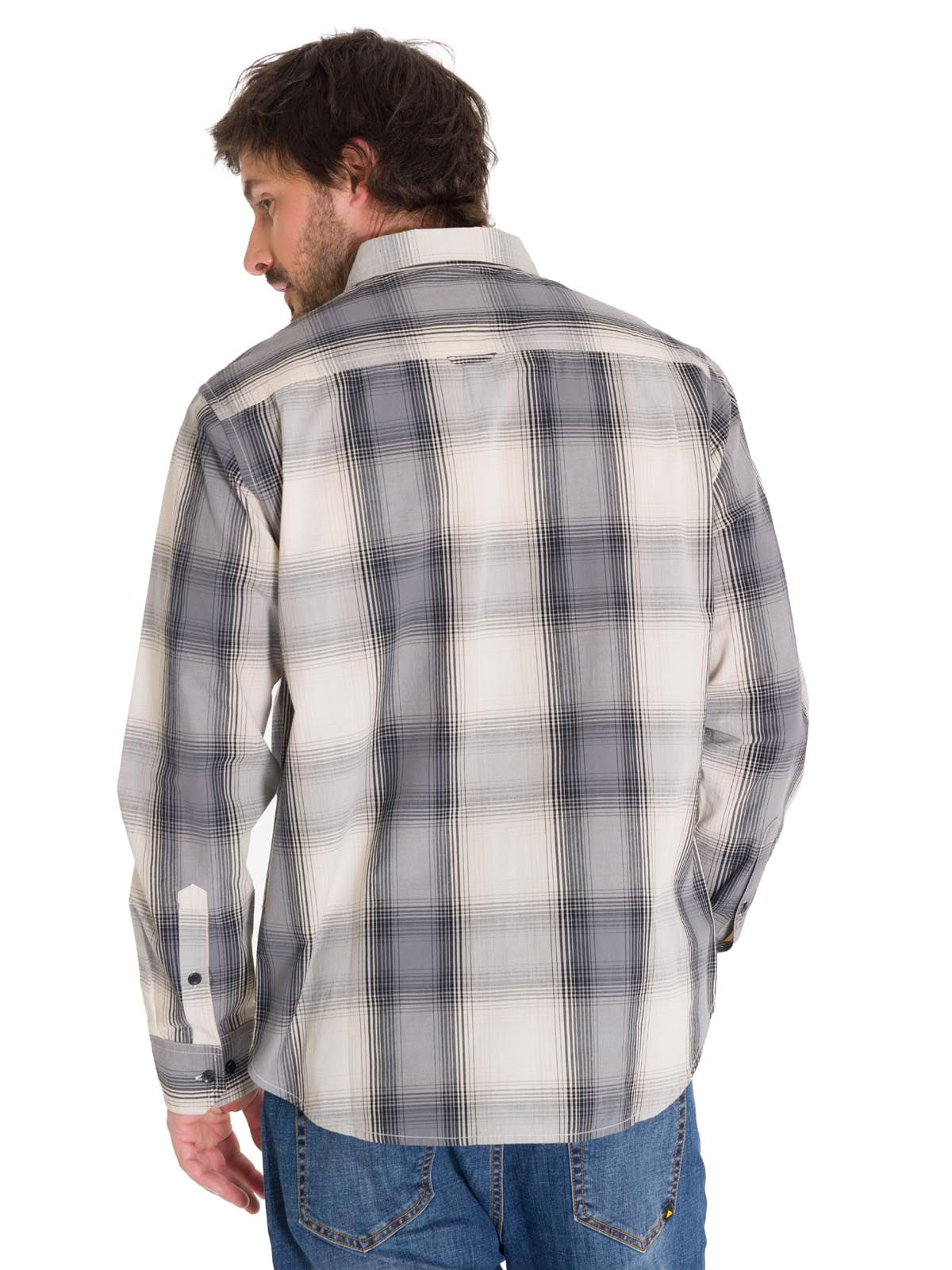 Men's Casual Long Sleeve Shirt Plaid Poplin Yellow CAT