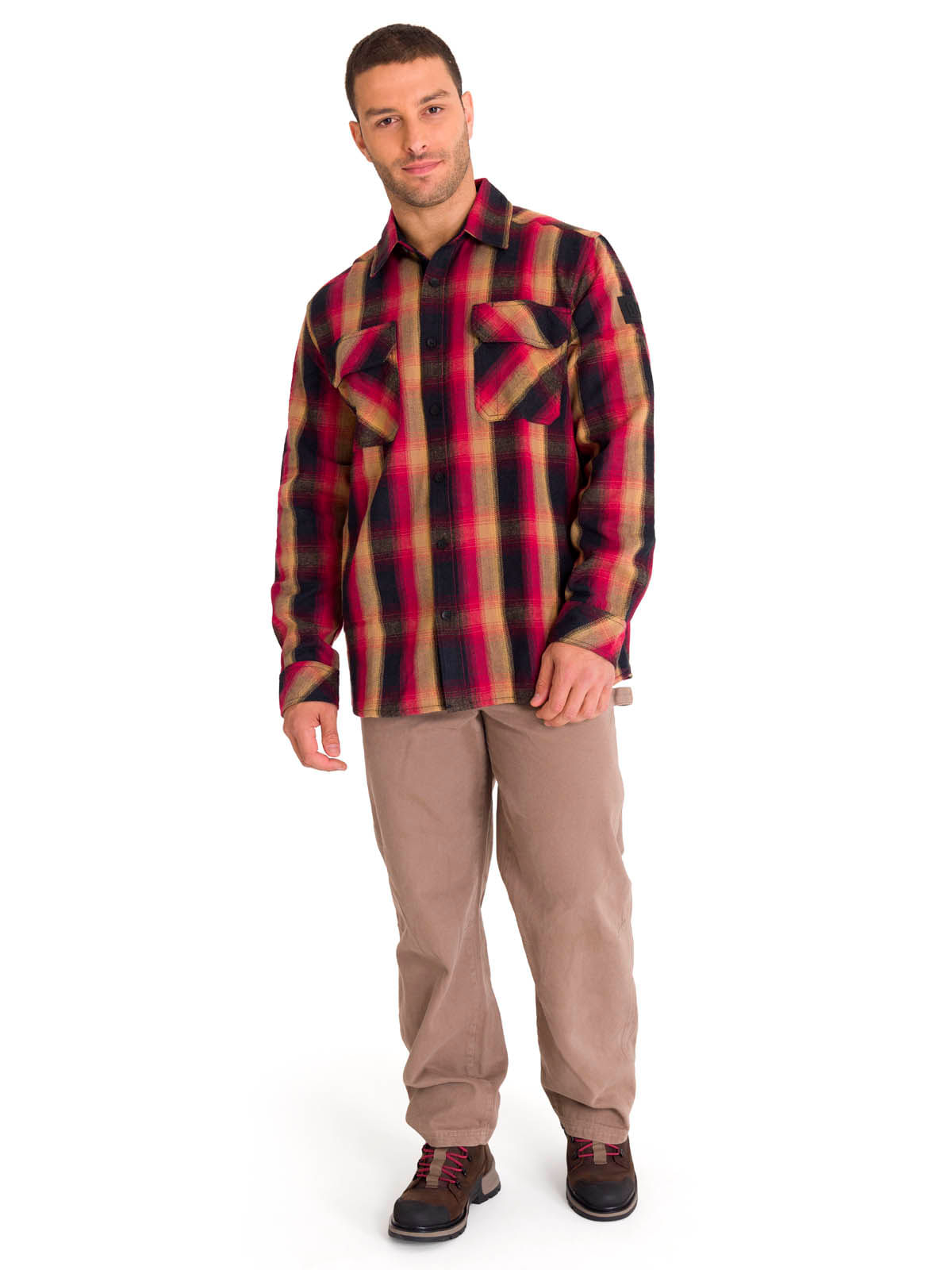 Men's Long Sleeve Buffalo Check Heavyweight Overshirt Red Cat