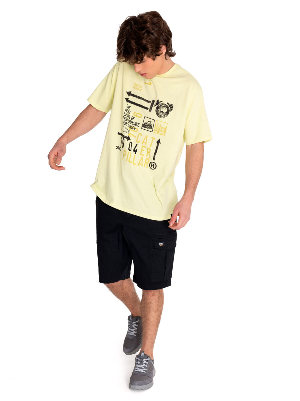 Short Sleeve Casual Men's T-Shirt RENEWED ENERGY GRAPHIC TEE 3 Yellow CAT