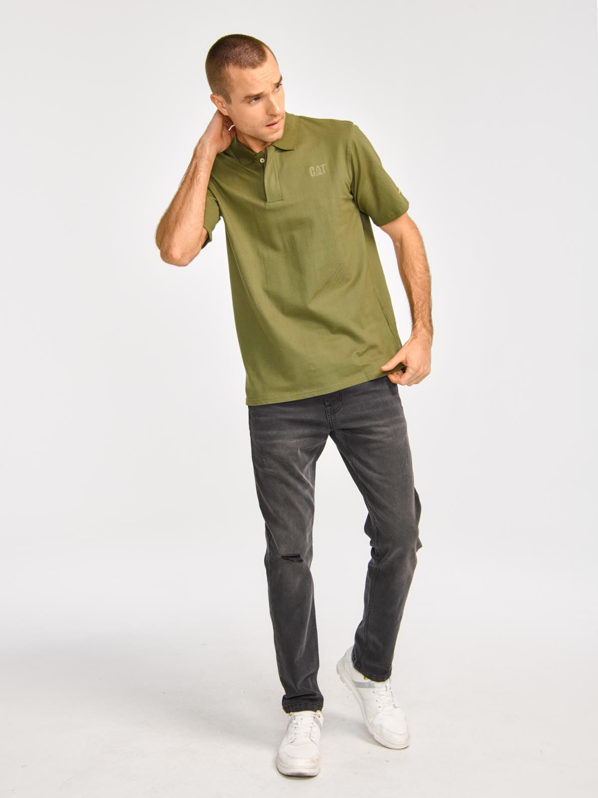 Polo Shirt Men Logo CAT Olive Cat