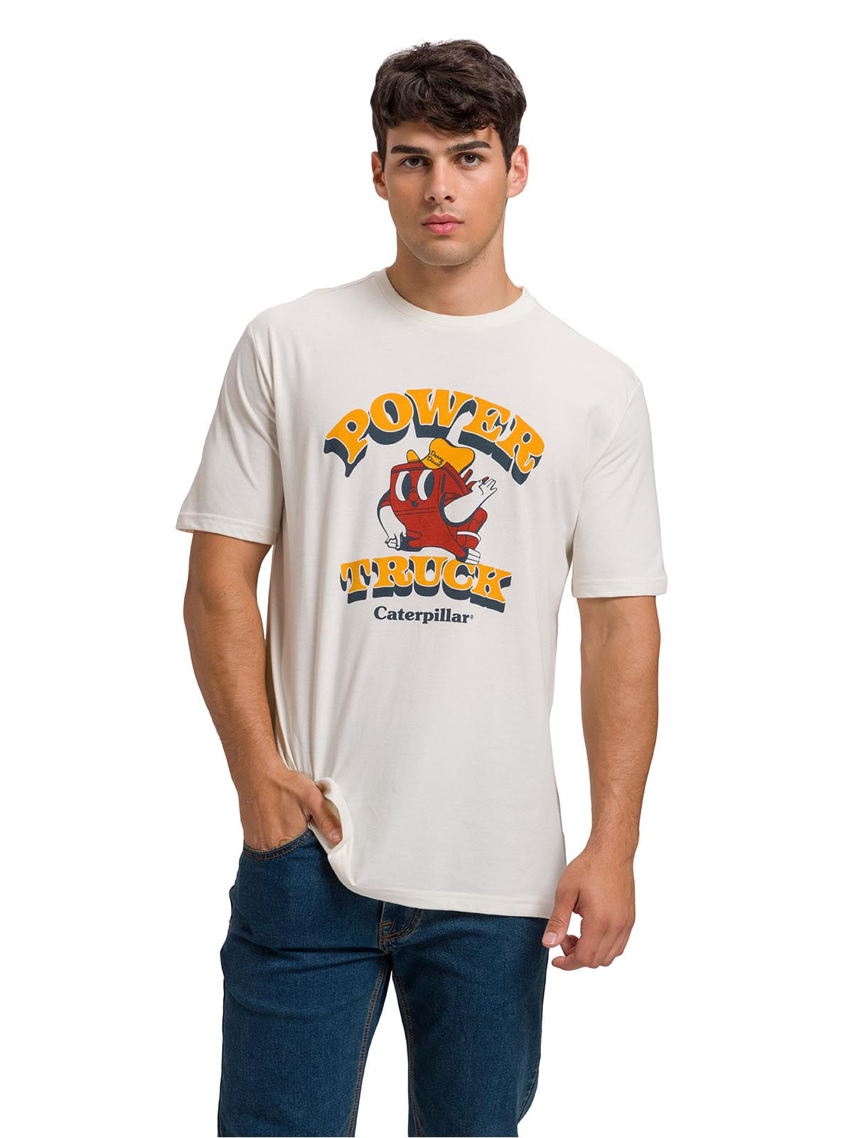 Short Sleeve T-Shirt Men Caterpillar Logo White Cat
