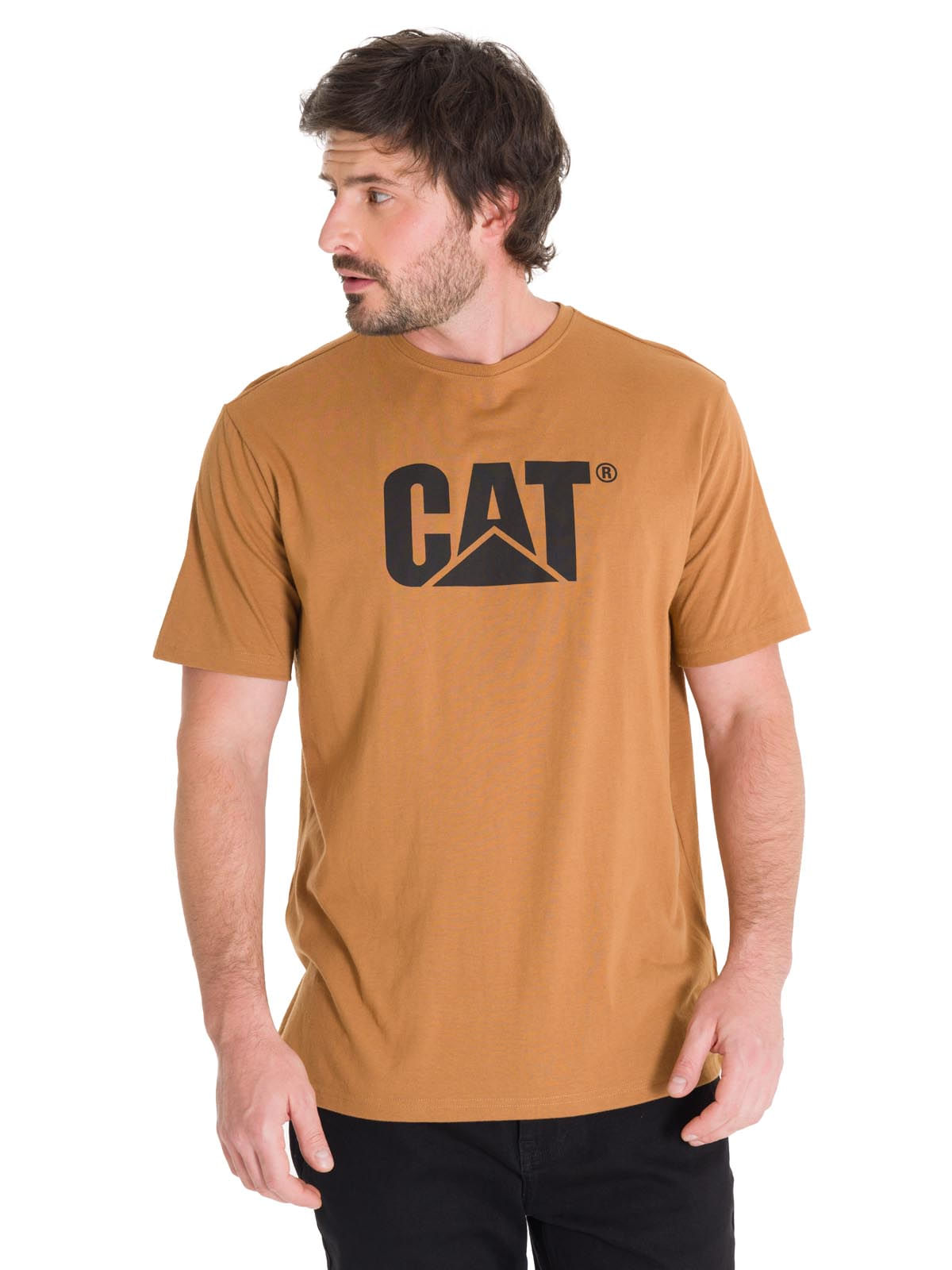 Short Sleeve T-Shirt Men Caterpillar Logo Yellow Cat