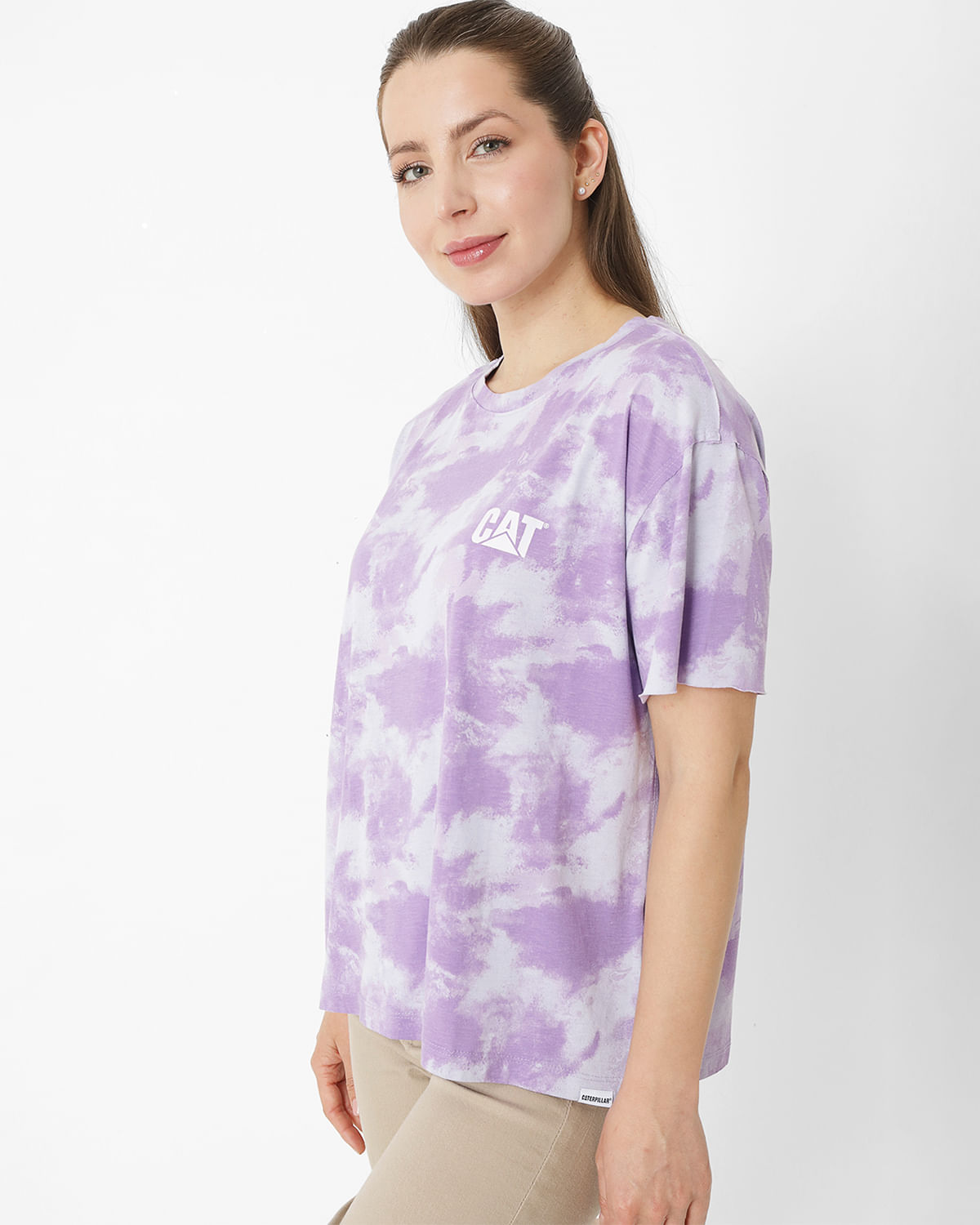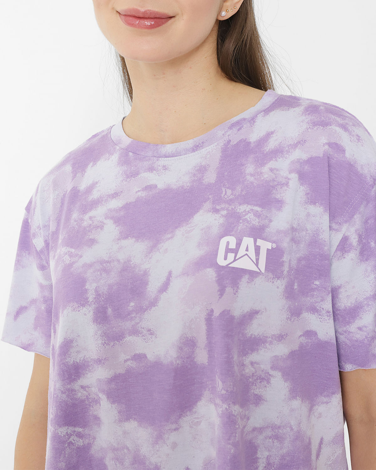Short Sleeve Casual Women's T-Shirt W Ez Tie Dye Tee Purple Cat