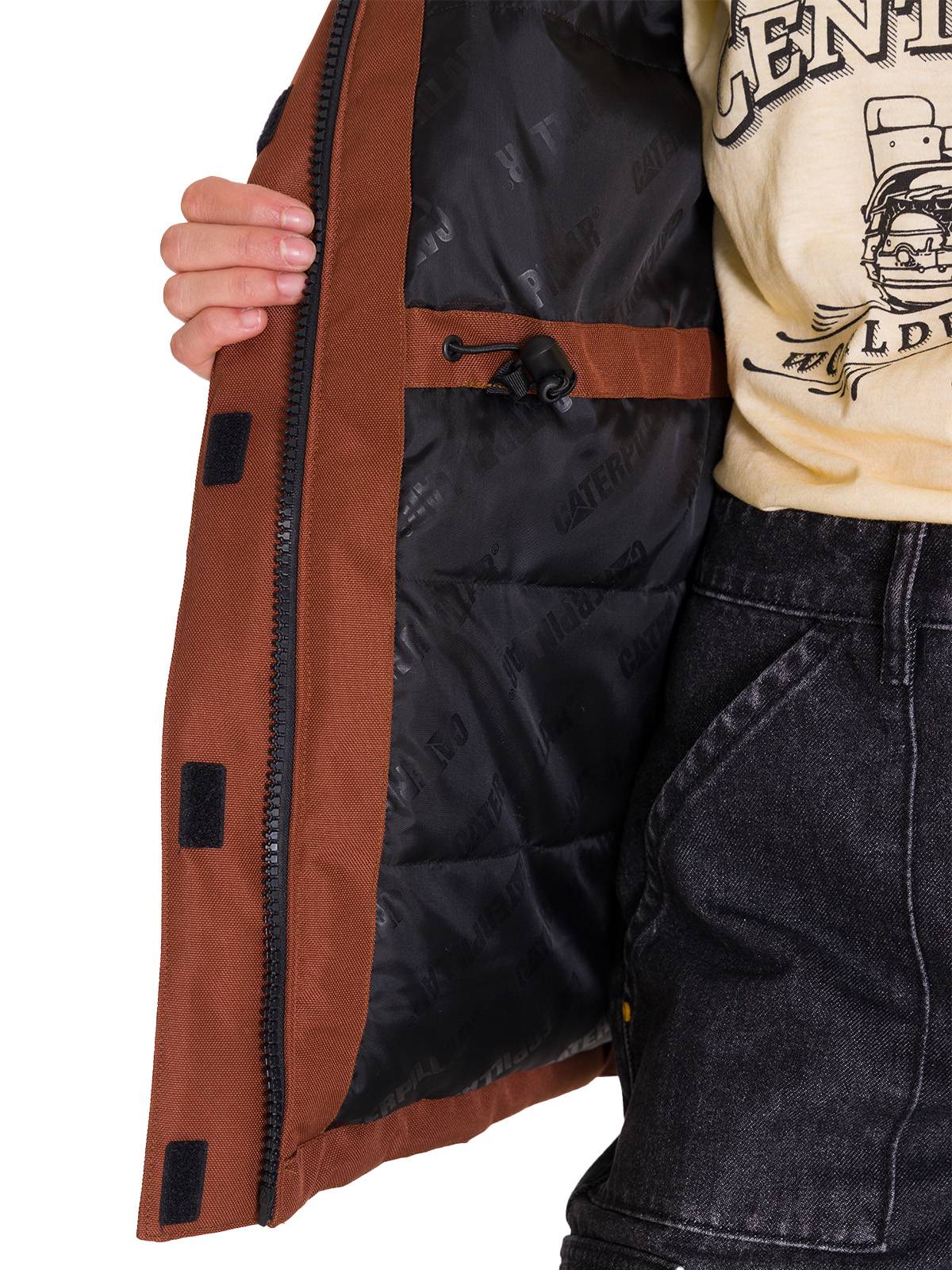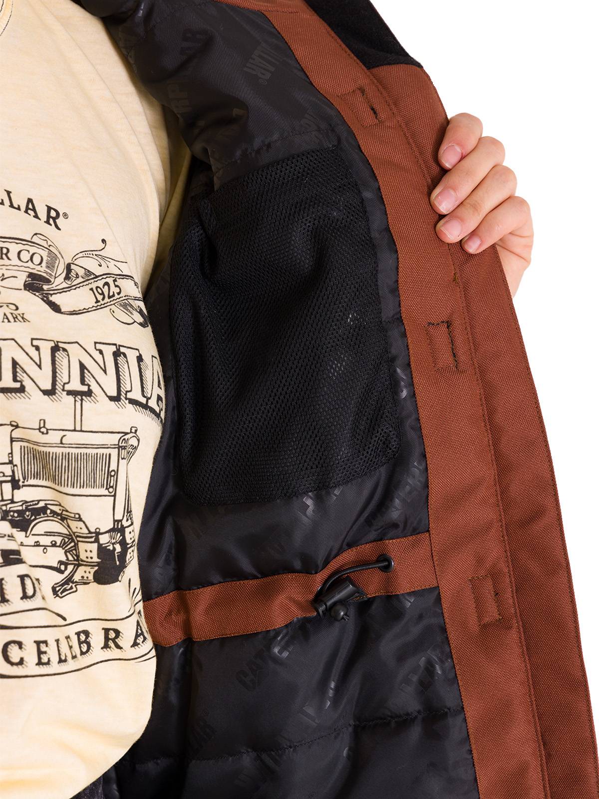 - Lining with the Caterpillar logo printed and an inner chest pocket