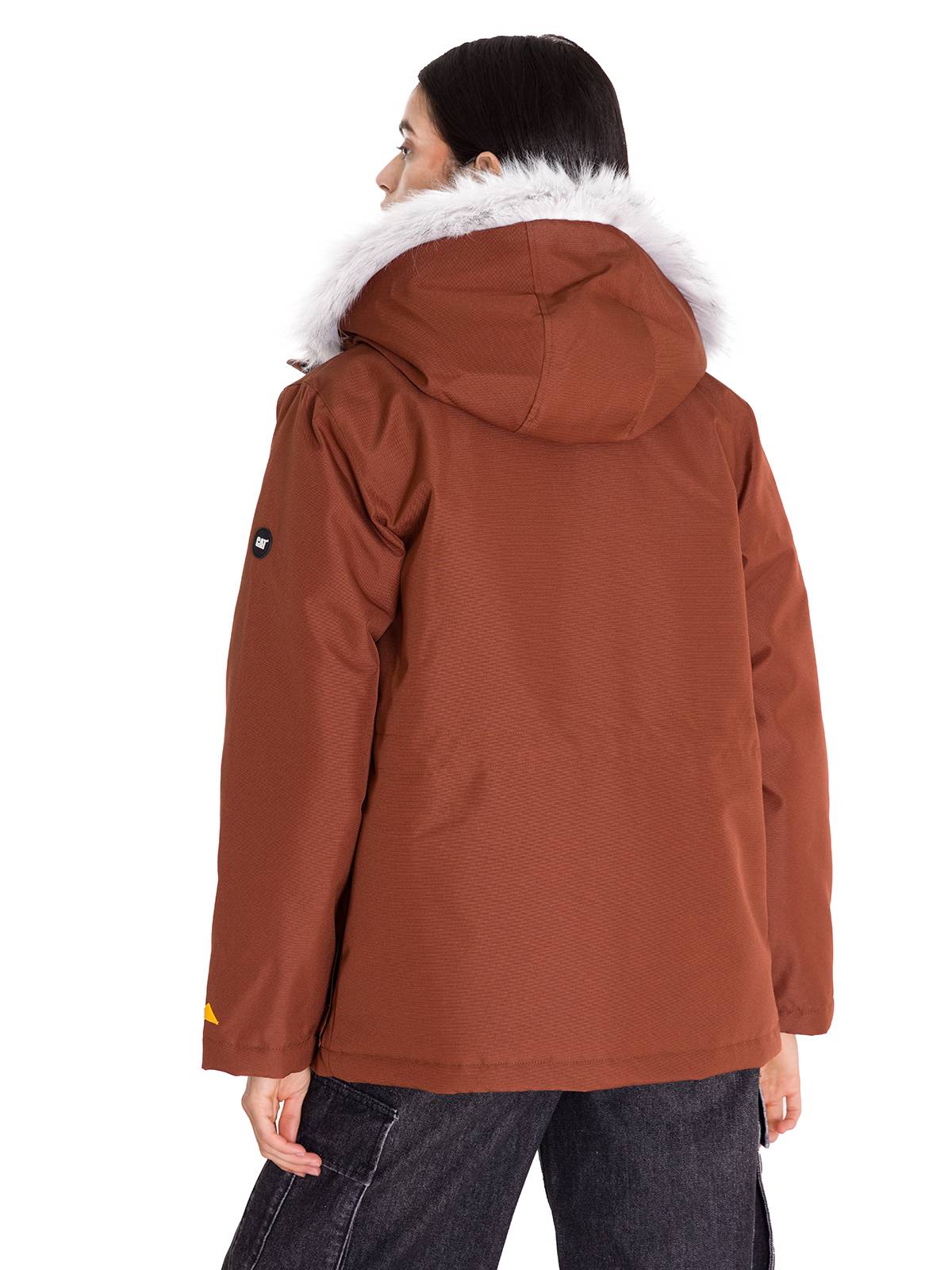 Casual Long Sleeve Jacket for Women MEDIUMWEIGHT INSULATED FAUX FUR HOODED Terracota Cat