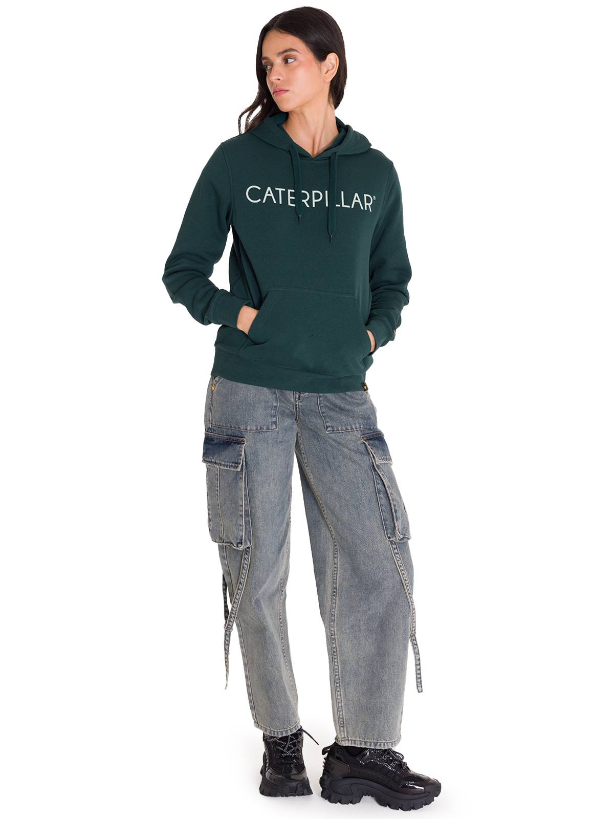 Hooded Sweatshirt Women Caterpillar Logo Green CAT