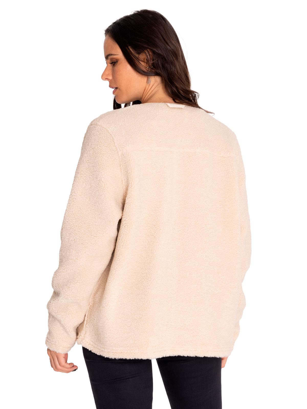- Polar Casual Women's Long Button Front Sherpa Jacket Beige/Cream Cat