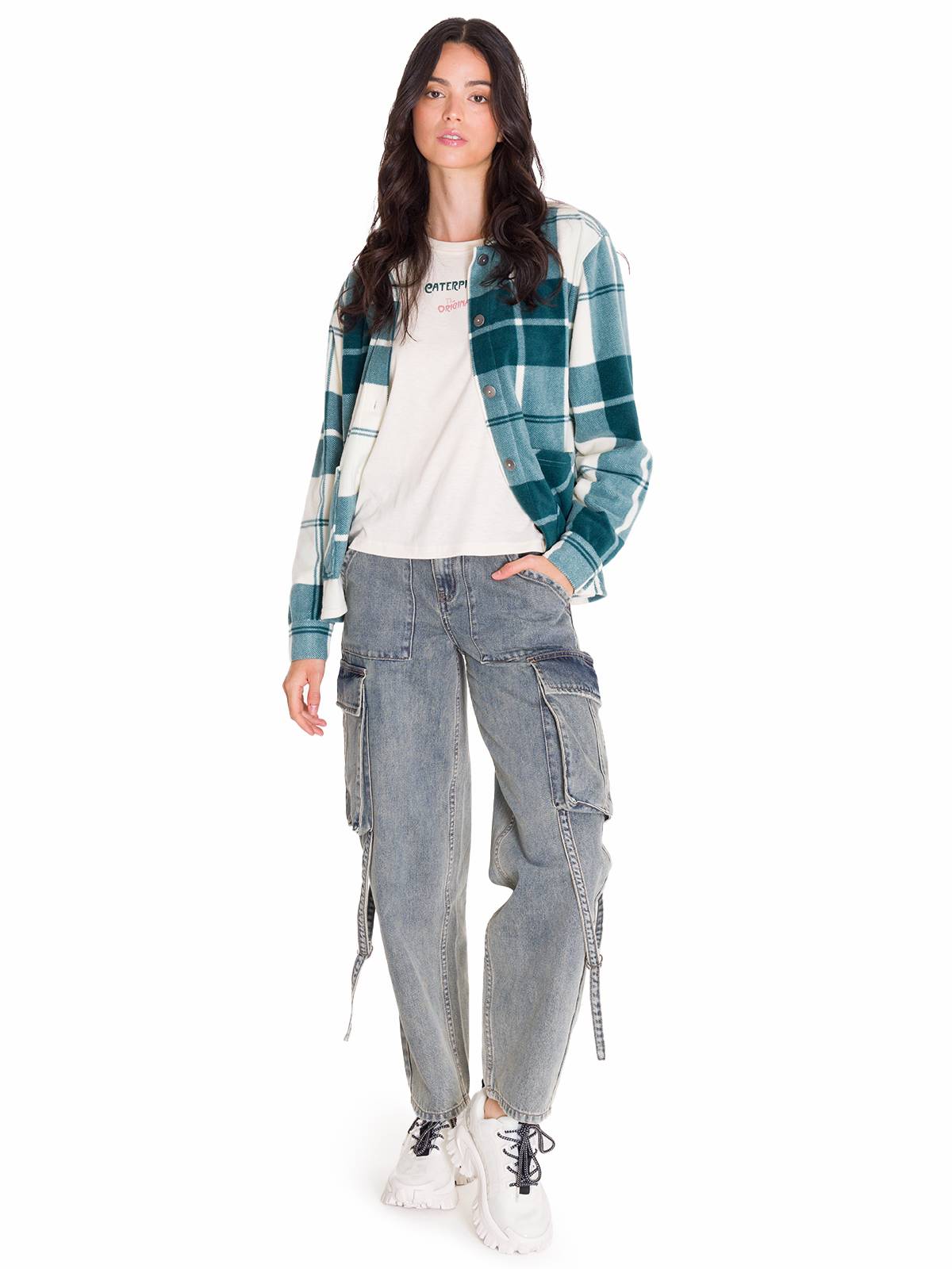 Women's Long Sleeve Jacket W Microfleece Shirt Teal Green Cat