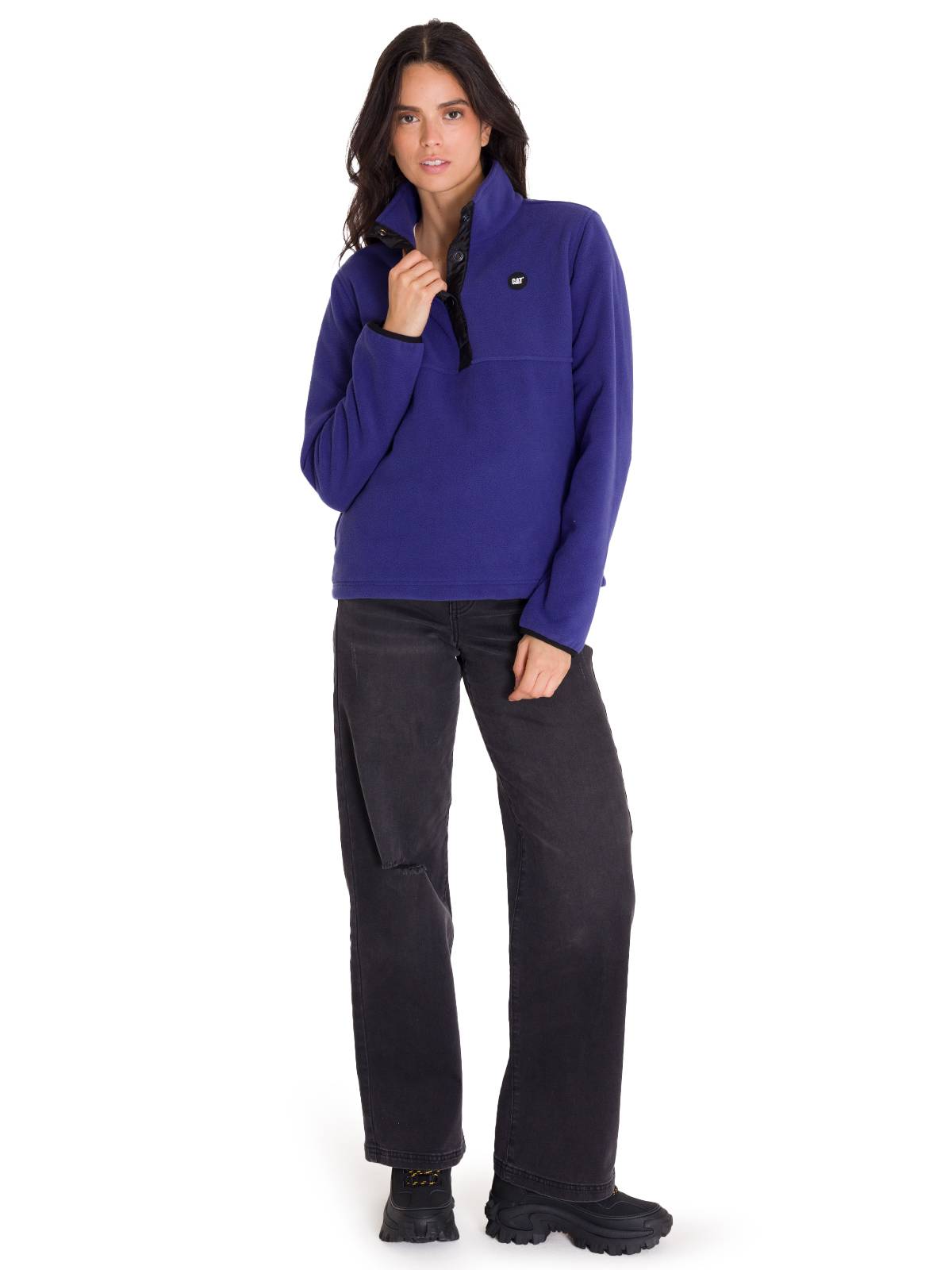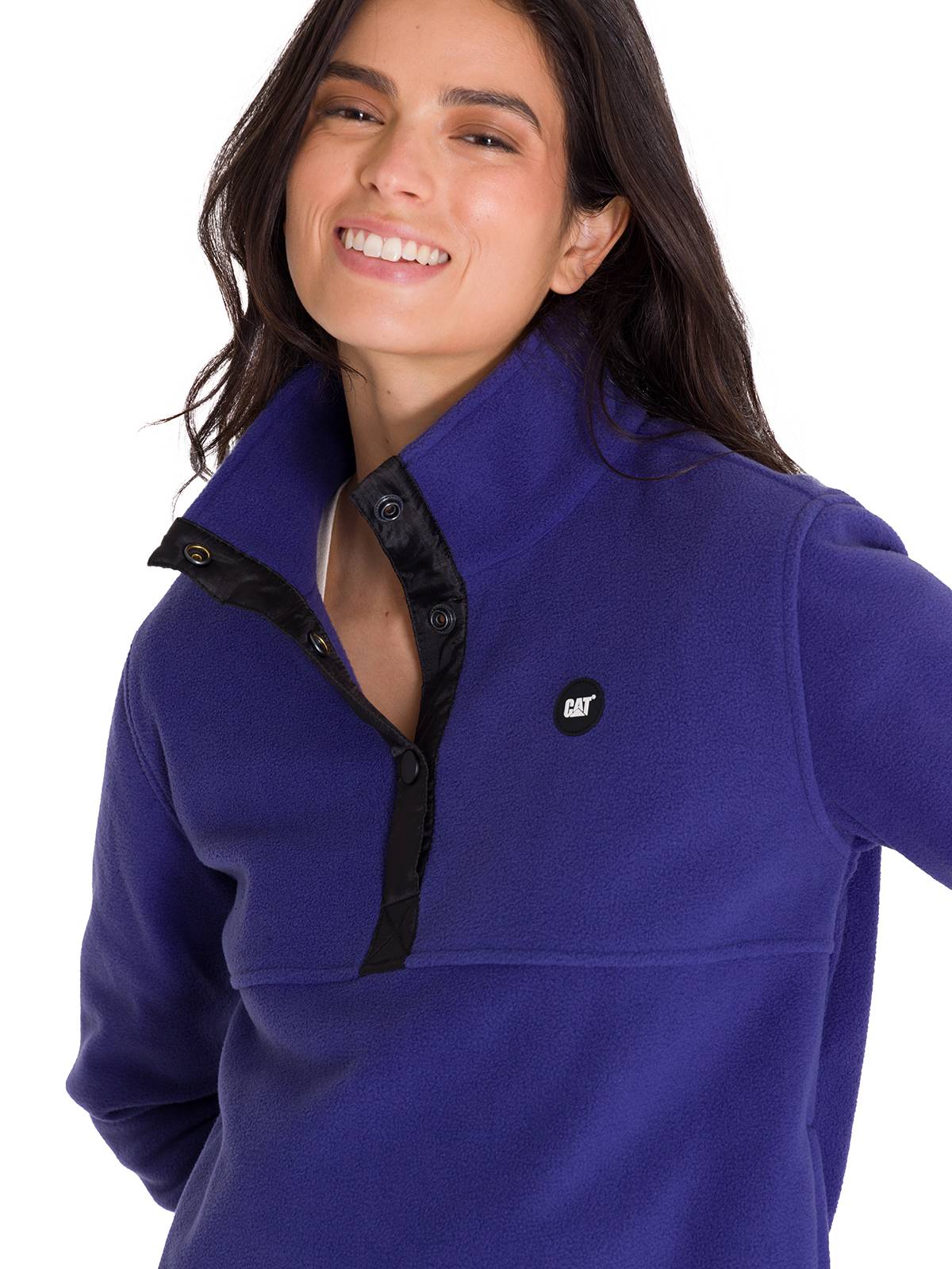 Women's Long Sleeve Polar Fleece Half Snap Po Blue Cat